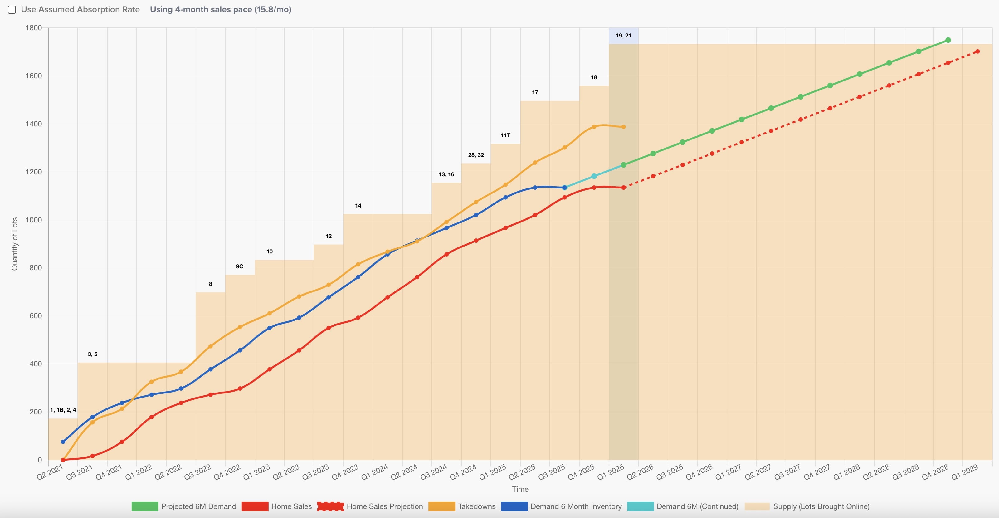 Stay ahead of inventory shortages with Pipsy's Supply and Demand Analysis engine. Predict when you'll run out of lots before it impacts your builders.