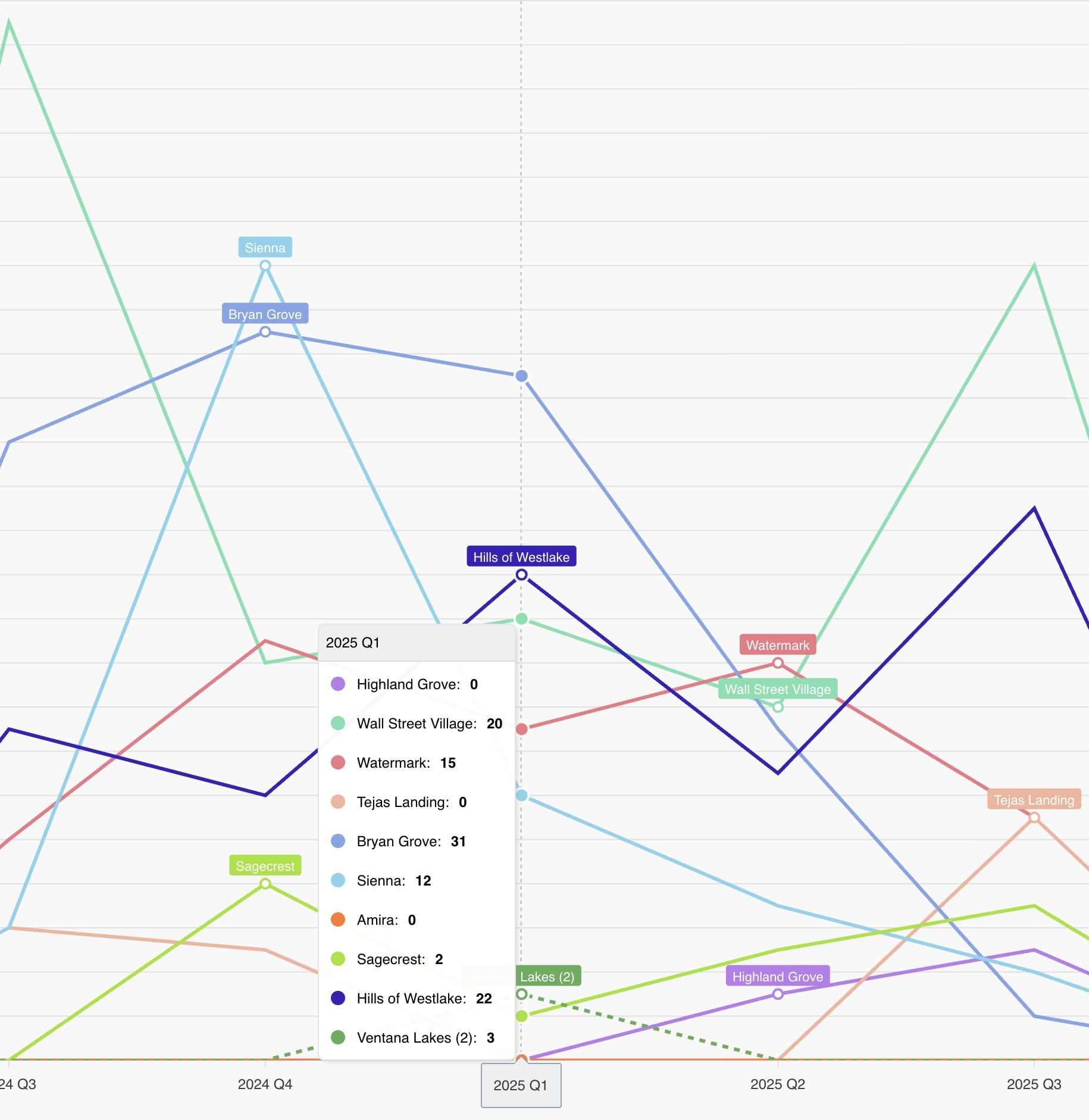 Competition is the name of the game. Builder performance is broken out by lot type to show which builders are exceeding sales expectations and which are not.